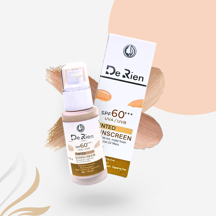 Experience high-performance sun protection and flawless skin coverage in one with De Rien Tinted Sunscreen. This innovative, dermatologist-tested formula offers SPF 60+++ broad-spectrum defense against harmful UVA and UVB rays while doubling as a lightweight, fluid foundation.